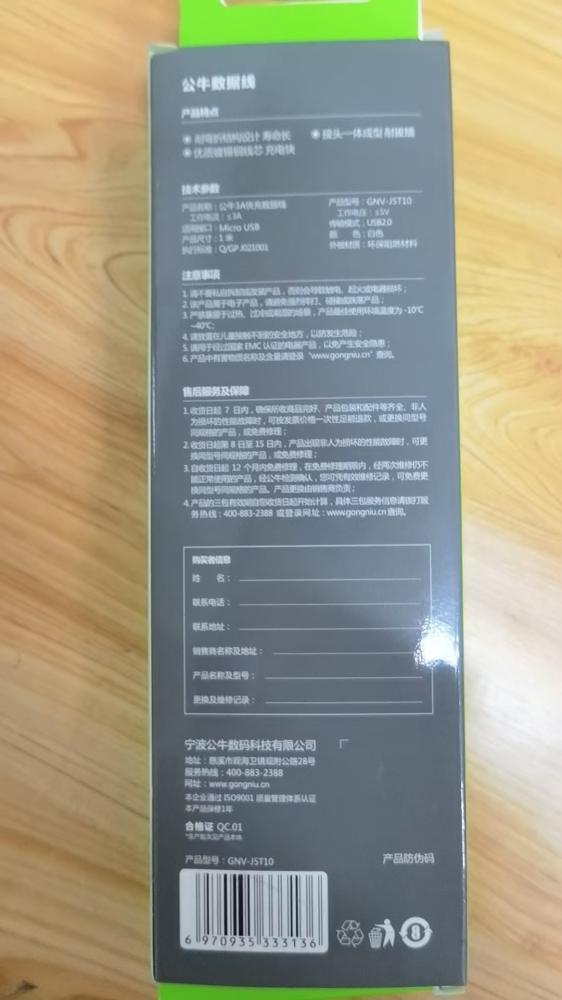 公牛安卓小扁口快充线
