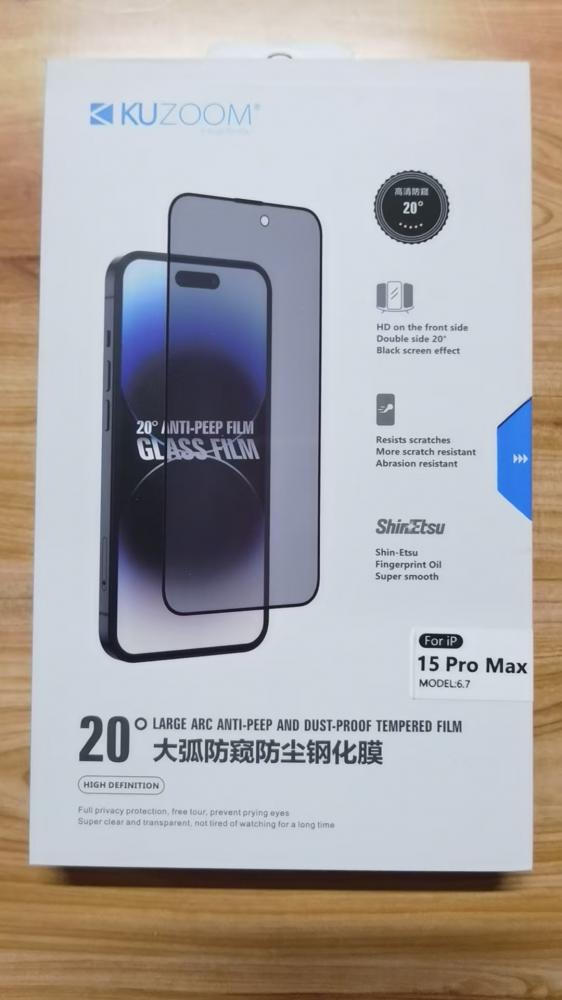 苹果15promax 20℃大弧防窥防尘钢化膜