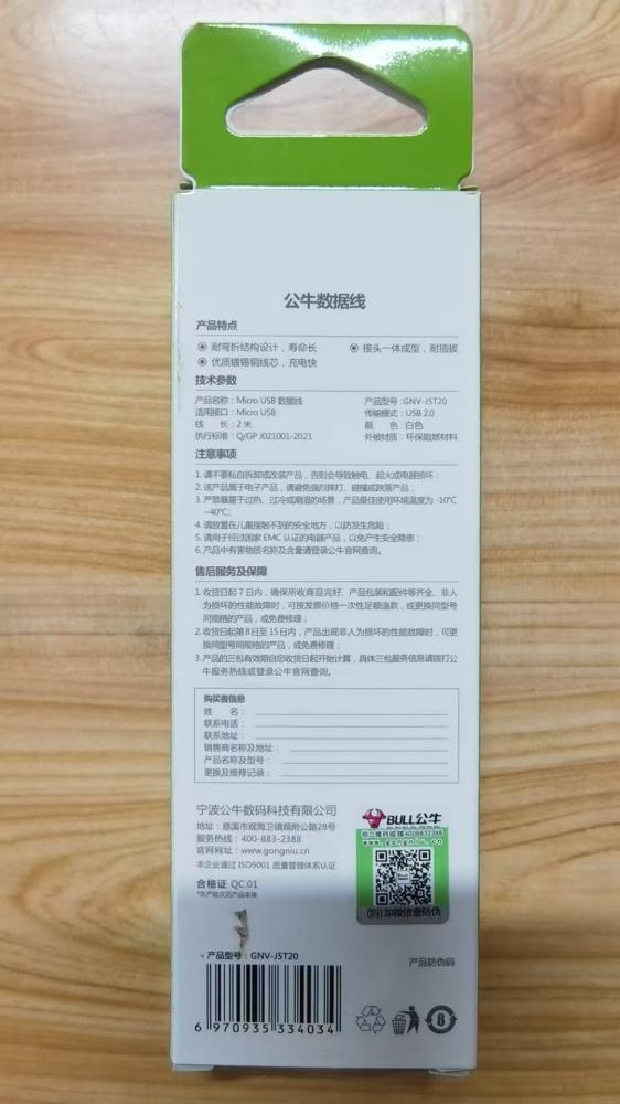安卓小扁口分反正 2米 3A公牛速充数据线