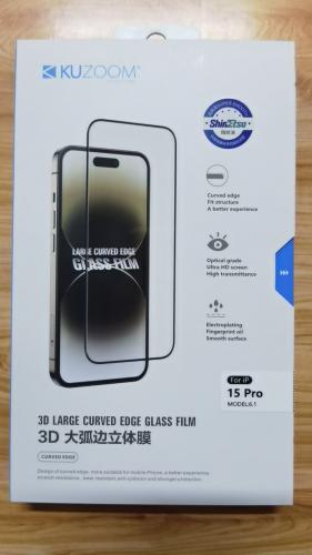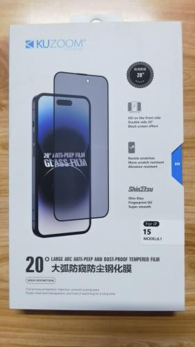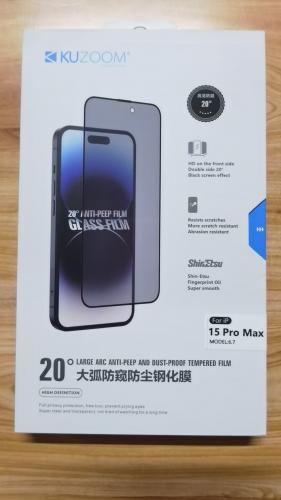 苹果15pro 20℃大弧防窥防尘钢化膜