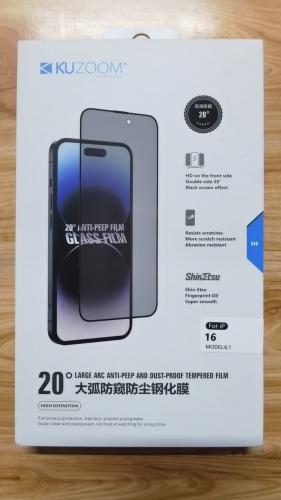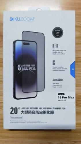 苹果16pro 20℃大弧防窥防尘钢化膜