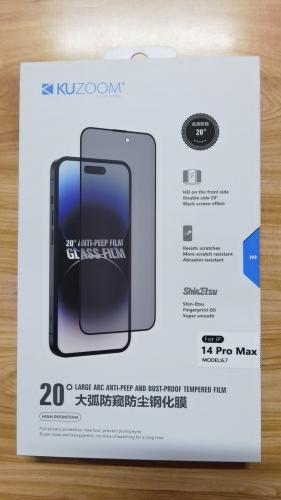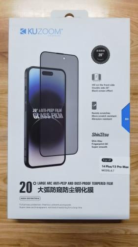 苹果14promax 20℃大弧防窥防尘钢化膜