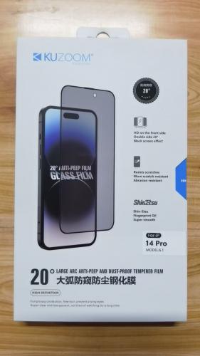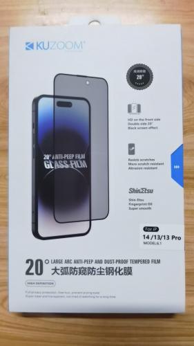苹果14pro 20℃大弧防窥防尘钢化膜