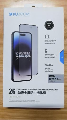 苹果12 苹果12pro 20℃大弧防窥防尘钢化膜