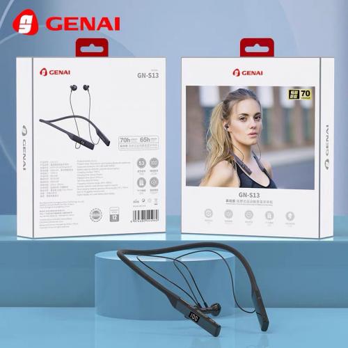 歌奈无线蓝牙运动挂脖耳机带显示超长续航入耳式通话蓝牙耳机